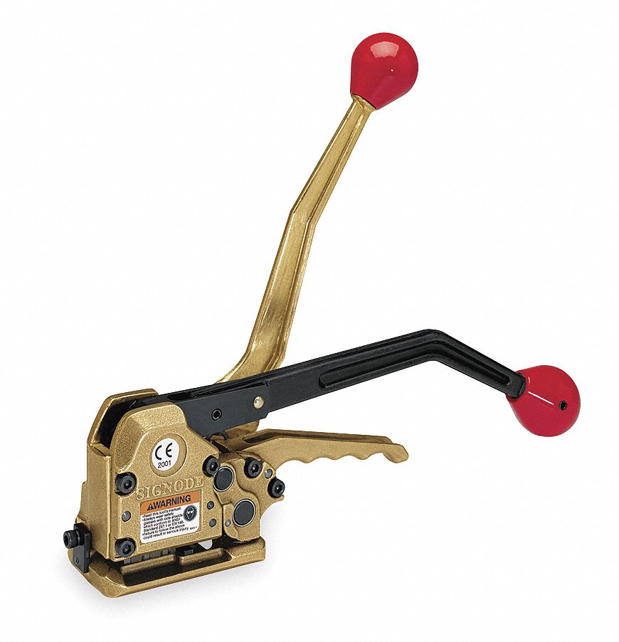 Signode combination steel hand tool are popular with customers and are used to tension seal and cut steel strap all in the one tool.